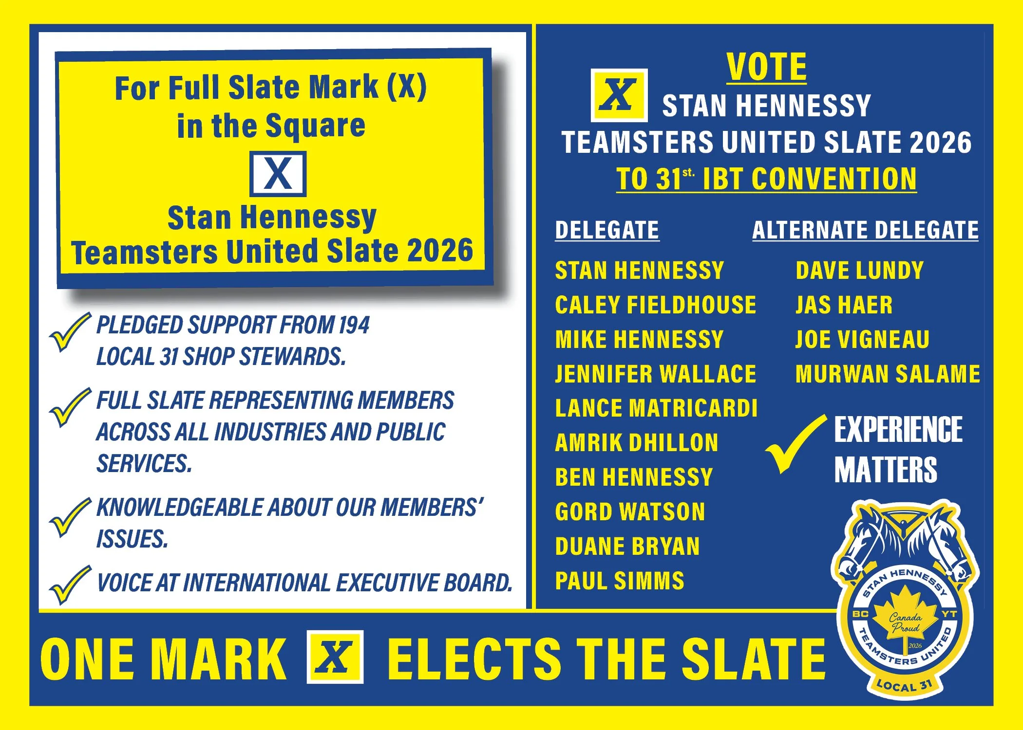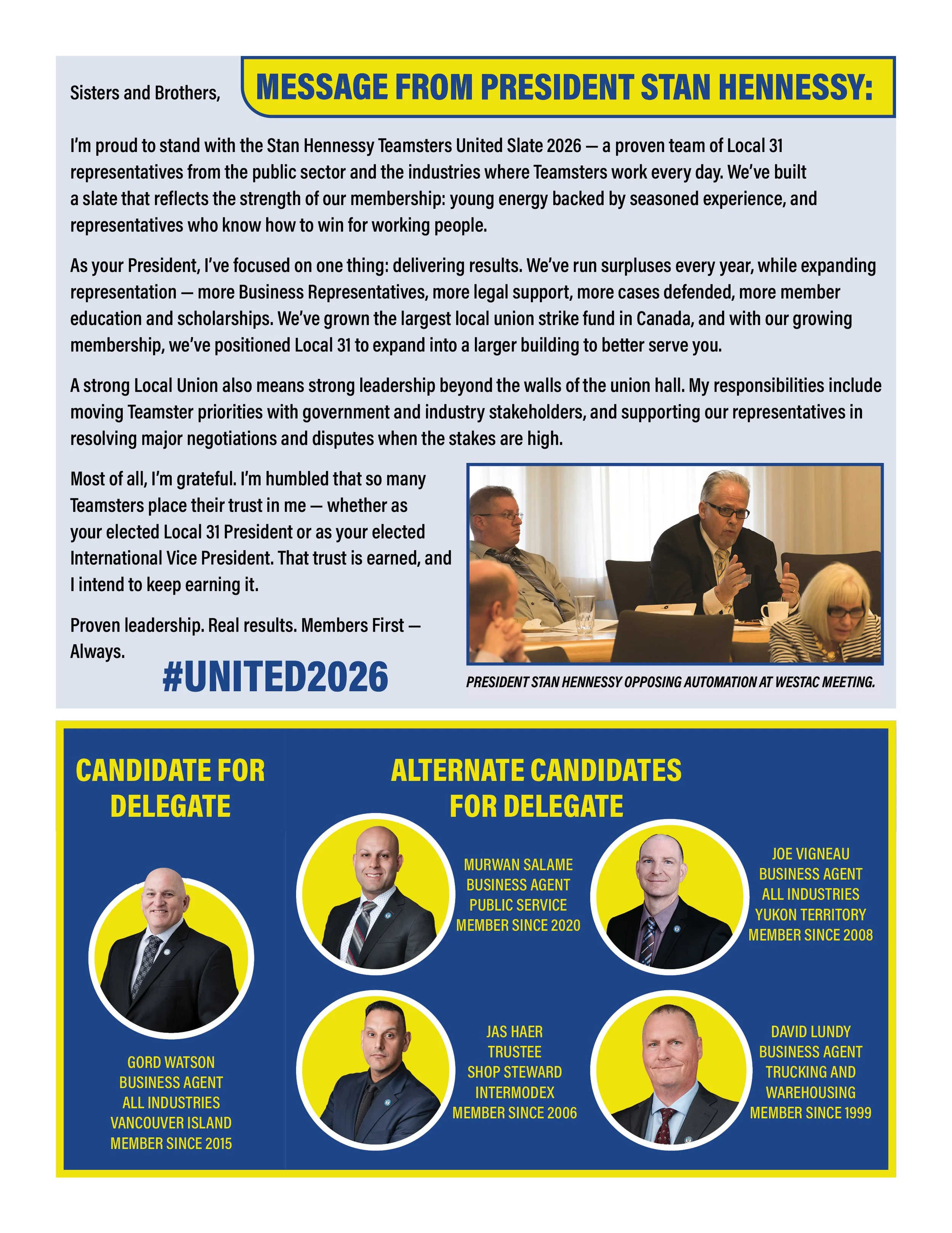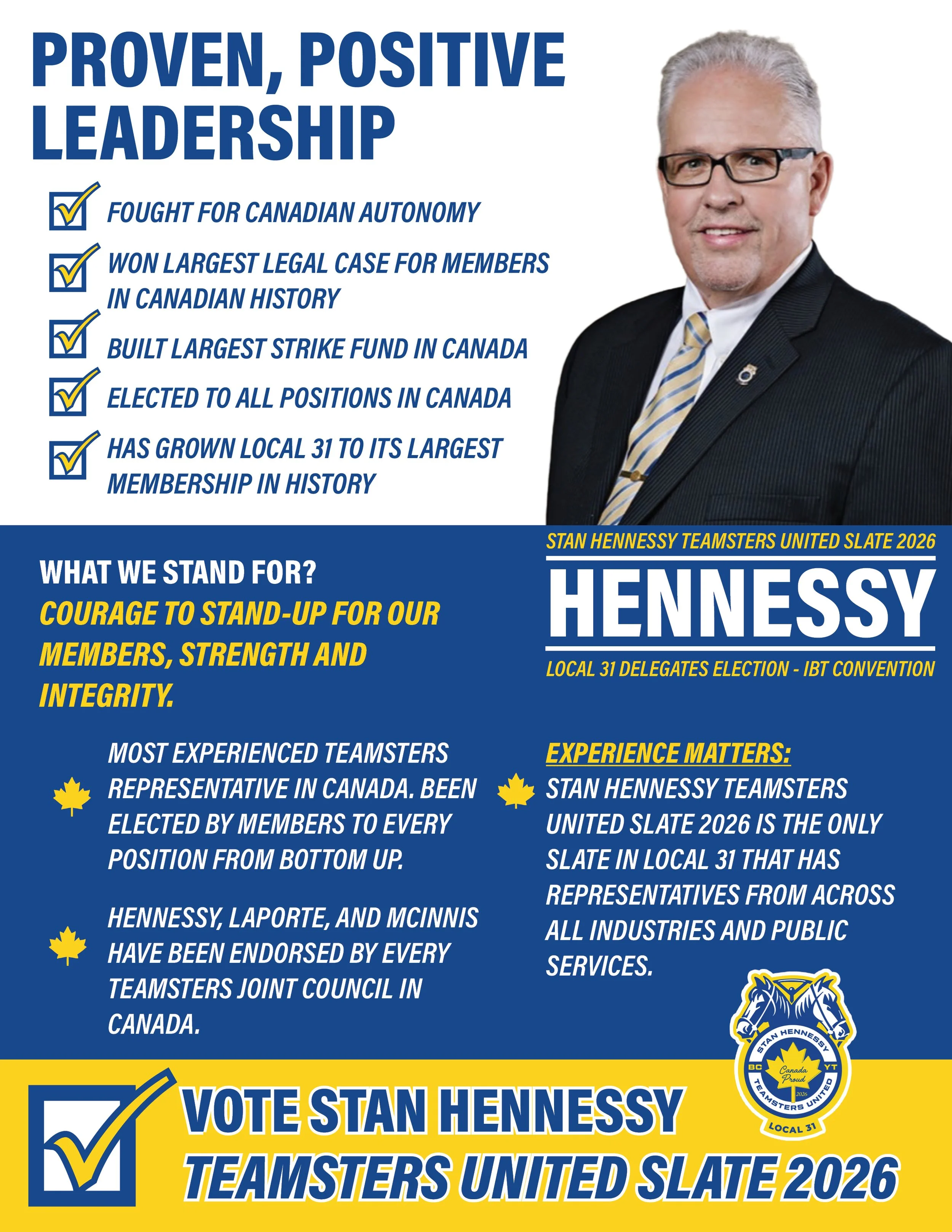 STAN HENNESSY TEAMSTERS UNITED SLATE 2026