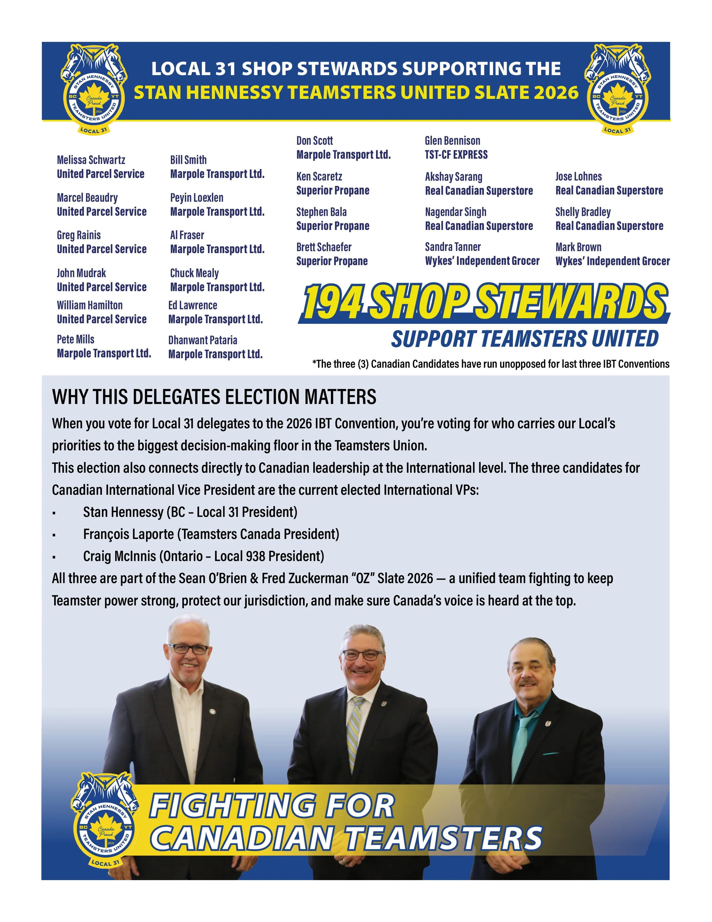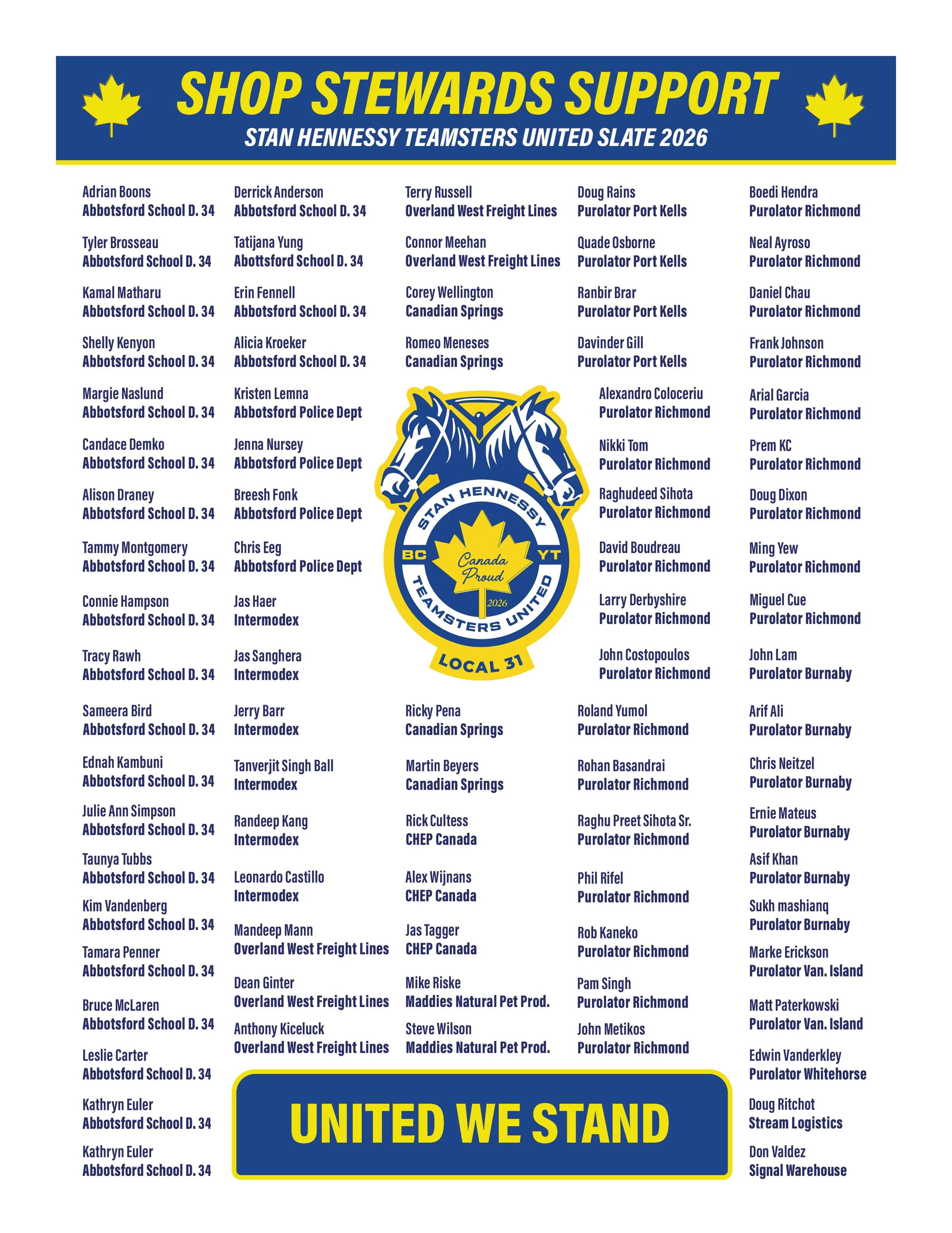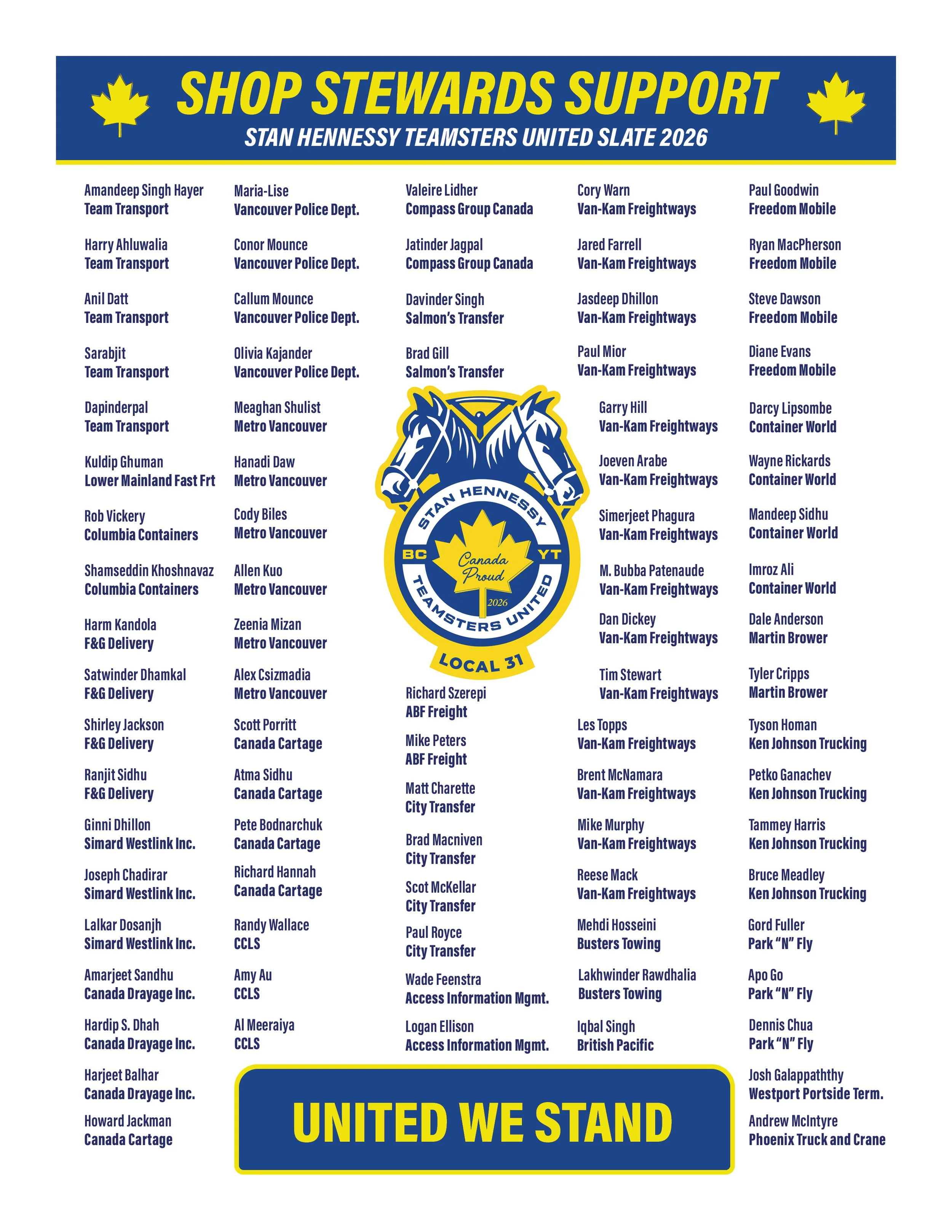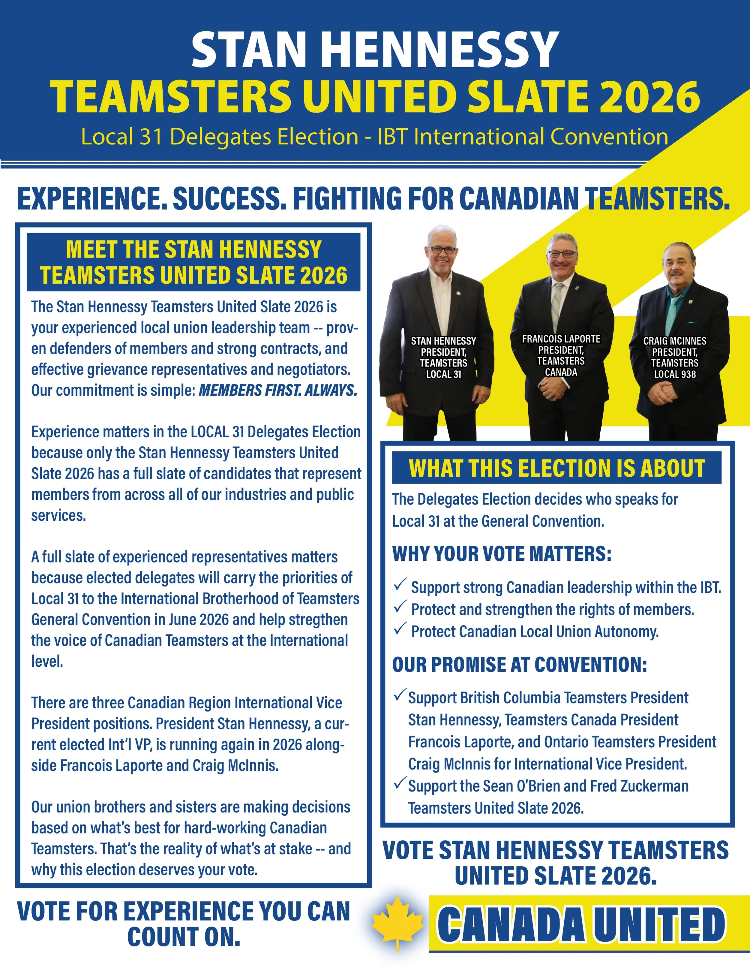 STAN HENNESSY TEAMSTERS UNITED SLATE 2026